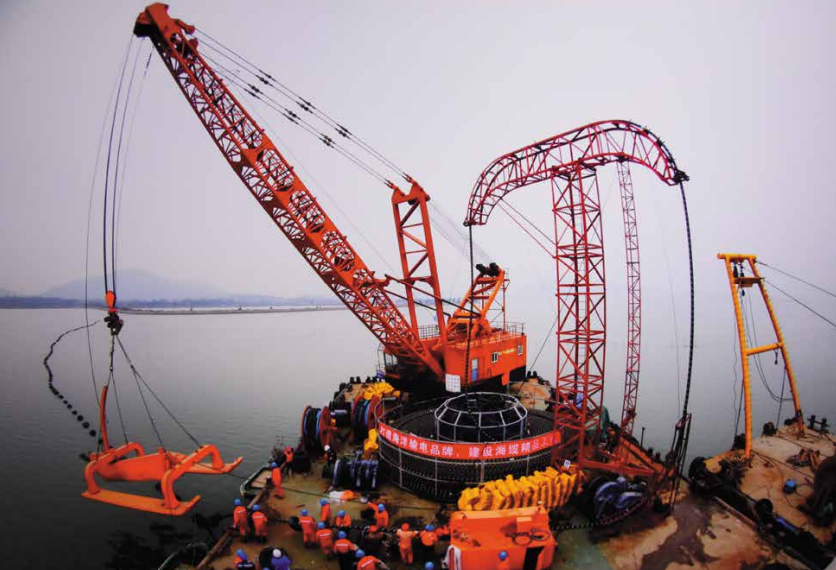 2022年6月11日,南通如东洋口港阳光岛110千伏变电站跨海电缆敷设。