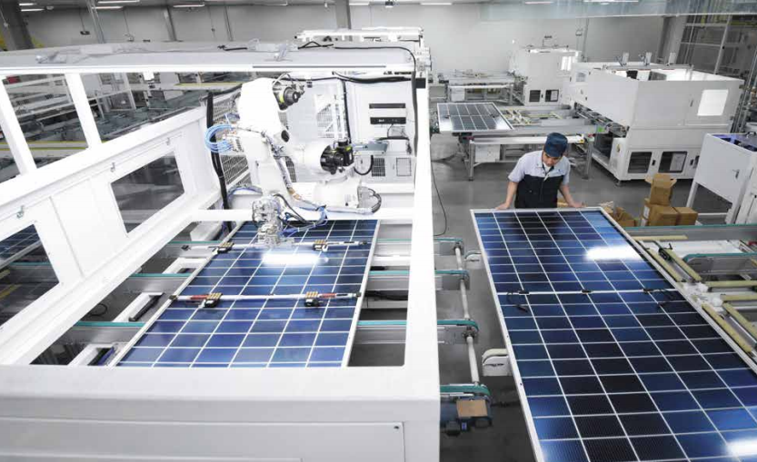 天合光能光伏组件生产车间通过数字化管理实现了对设备运营、过程质量和能源等维度的高效管理。