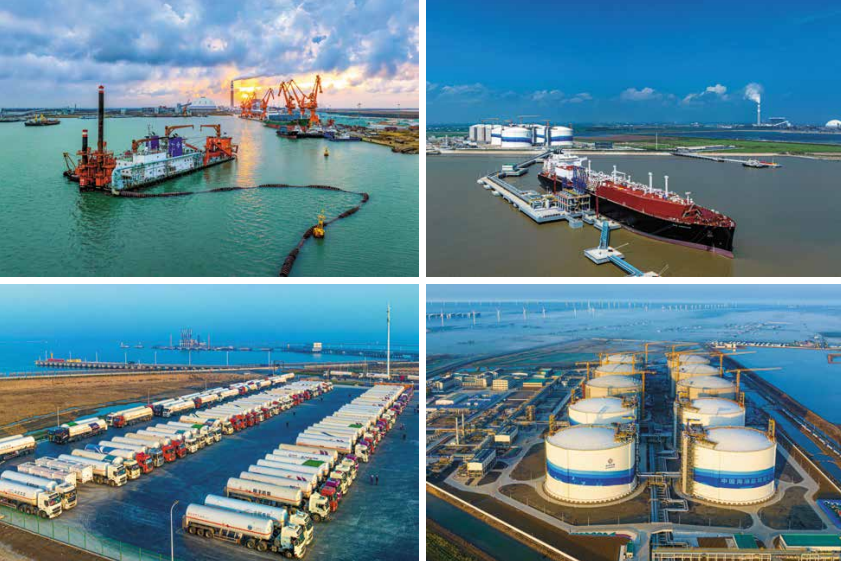 中海油盐城“绿能港”项目位于江苏省盐城市滨海港工业园区,项目包含4座22万立方米液化天然气储罐和6座27万立方米液化天然气储罐,总罐容达250万立方米,可满足千万户家庭8个月的生活用气。这是我国规模最大的液化天然气储备基地,对提高长江经济带能源安全保障能力、助力绿色发展具有重要意义。