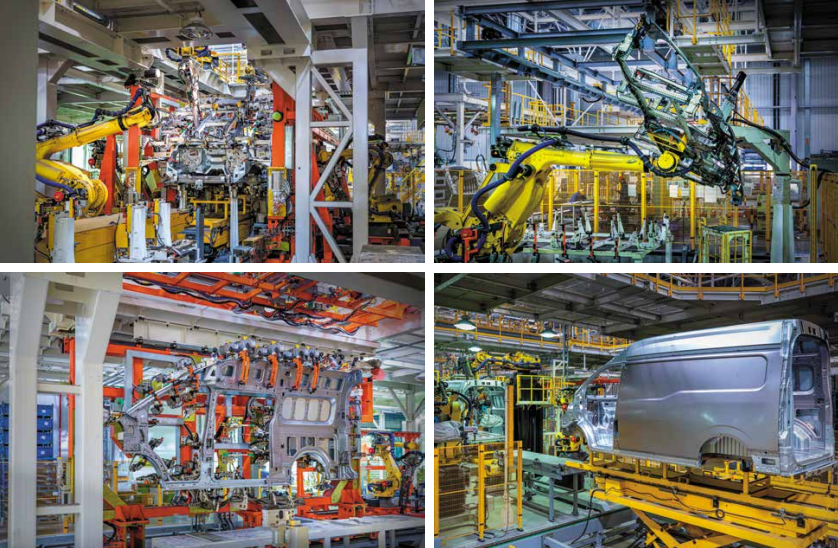 南京依维柯的焊装生产自动线具,大量使用机器人,在桥林基地的焊装车间,布置了11条自动生产流水线,拥有128台机器人,如总焊线的总拼工位使用12台机器人、14把伺服焊枪、13个机器人抓手,可适应不同车型需求。通过全自动电脑在线控制,对产品、工装质量进行实时监控,确保焊接质量的稳定性和可靠性。