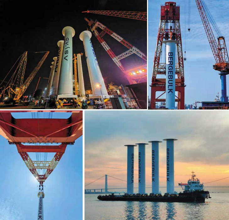 摄于2023年1月至2024年8月,无锡江阴市。2024年5月1日,中船澄西船舶修造有限公司为AnemoiMarineTechnologies公司建造的4套35米折叠式船用转子帆成功交付,标志着中国首批35米折叠式船用转子帆成功问世。