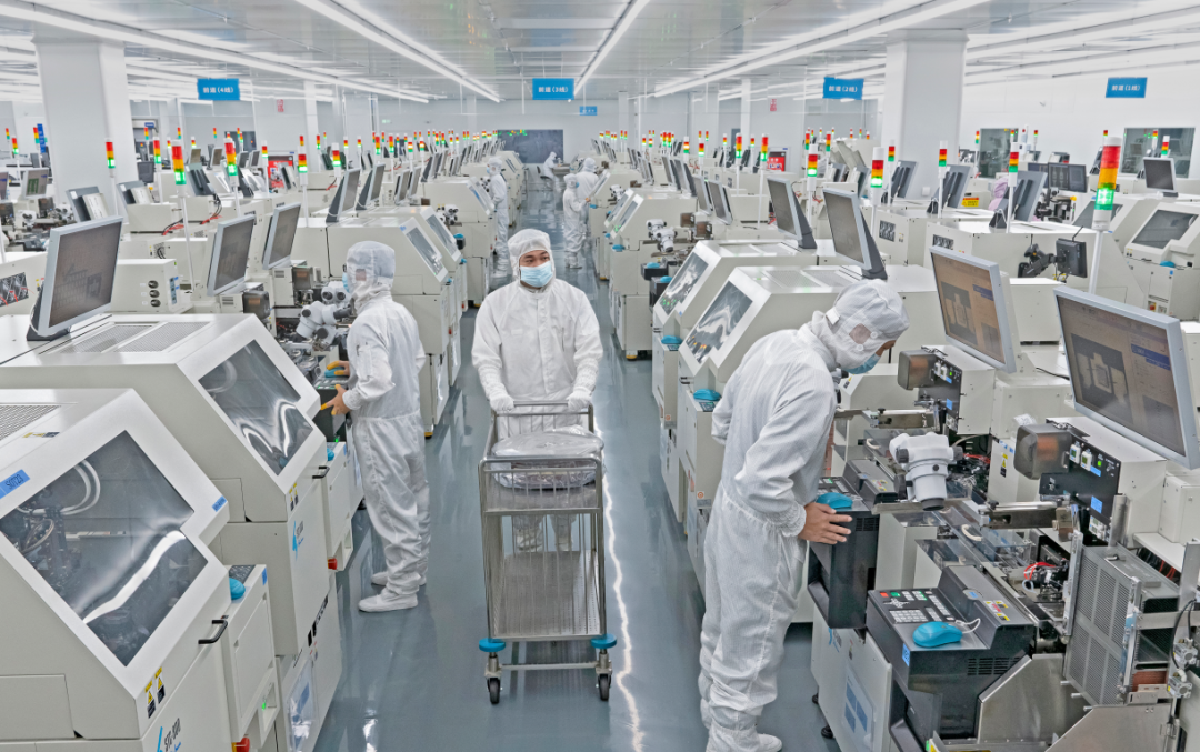 2022年10月9日,江苏长晶科技公司企业员工在无尘车间对芯片进行刻录安装。
