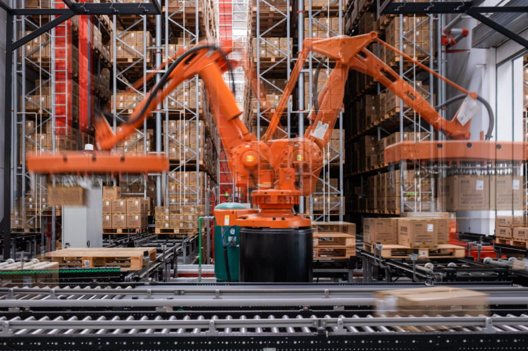 常熟波司登物流园智能仓库的机器人按照指令自动分拣输送。
