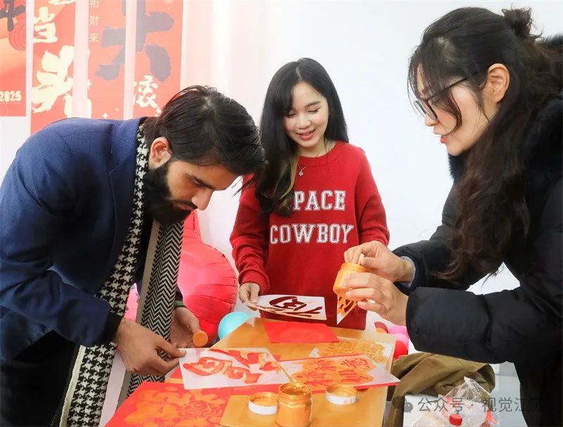 1月27日,在南通科技职业学院,八十多名留学生欢聚一堂,制作“春节”主题拓印作品,感受中国传统文化的魅力。贾冯翔摄