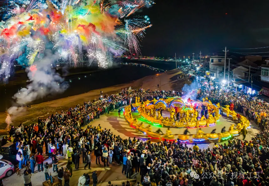大年初四,连云港渔湾景区一场火龙表演让观众们大饱眼福。庞学关摄