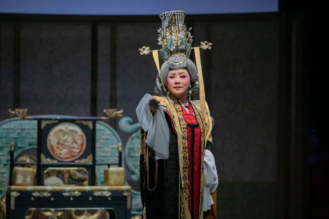 对李治的“记忆碎片”。当她抚摸李治遗留的玉笏(舞美中反复出现的道具),秦腔“二六板”突然转为“滚白”,唱腔中带着哭腔的颤音,暗喻她对夫妻之情的眷恋。这种“柔软”与她朝堂上的威严形成反差,证明她的权力之路并非始于“无情”,而是情感被现实碾碎后的“不得不”。