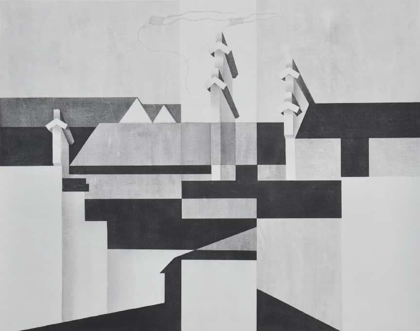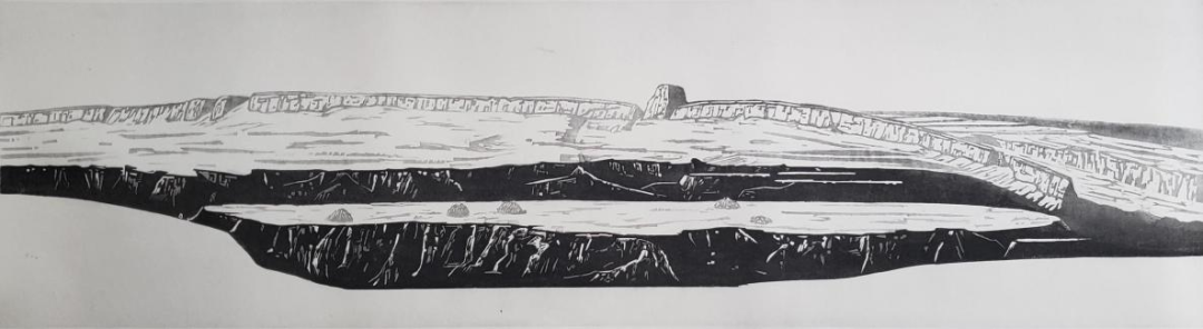 濮存周:《空间·瞬间》,木版水印,80cm x 125cm,2021
