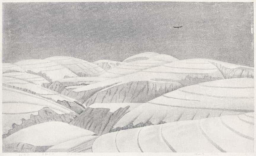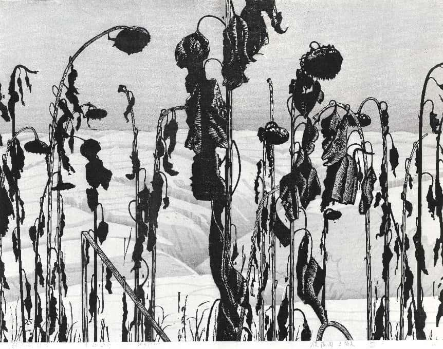 濮存周:《初雪》,52cm x 82cm,木版水印,1998