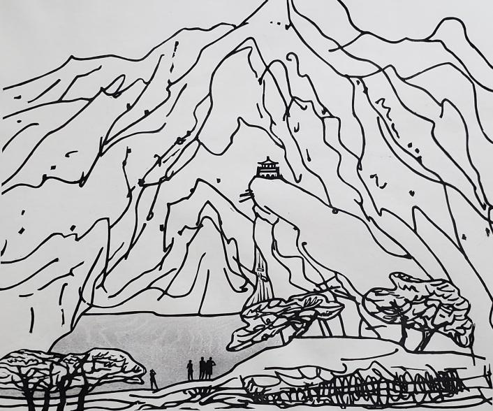 濮存周:《乐山乐水》,木版水印,86cm x 72cm,2021