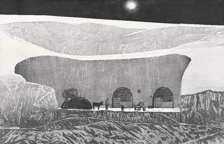 濮存周:《老屋》,木版水印,80cm x 104cm ,2013