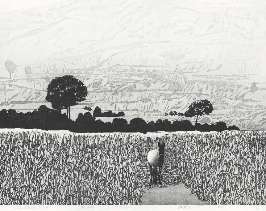 濮存周:《秋熟》,木版水印, 73.5cm x 80cm, 2000