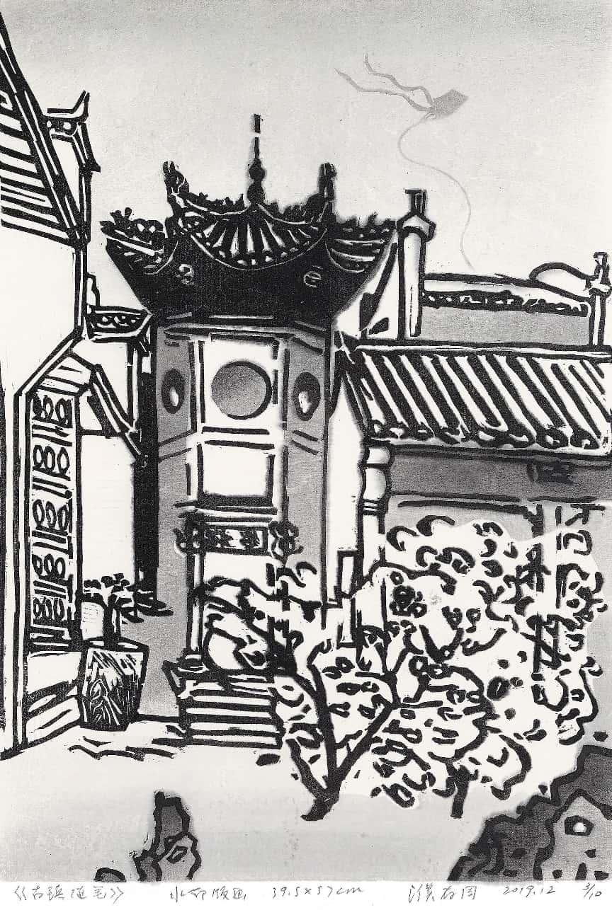 濮存周:《古镇随笔》,木版水印,57cm x 39.5cm ,2019