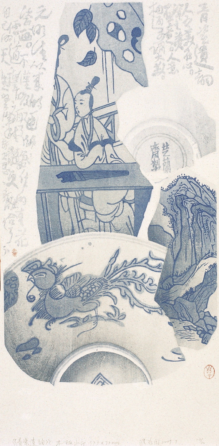 濮存周:《青花遗韵》,木版水印,77cm x 37.5cm ,2009