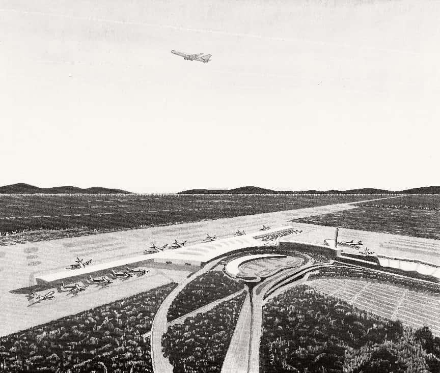 濮存周:《禄口机场》,木版水印,93.5cm x 110cm , 2021