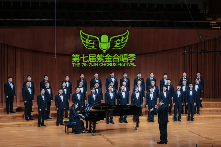 与这支中坚力量相映生辉的是一“老”一“少两支特邀合唱团,两支团队在历届紫金合唱节中曾多次斩获金奖。苏州吴韵少年艺术团·合唱团近年来在国内外各大比赛中屡获大奖,在艺术总监王超的精心培育下,孩子们以纯净通透的音色、和谐自然的和声及对音乐艺术的不懈追求,展现了童声合唱的艺术高度。这些代表着中国合唱未来的艺术新苗,正用他们真挚的歌声表达着对祖国的热爱与崇敬。而无锡山禾中老年合唱团则以平均65岁的年龄,创造了仅建团一年便夺得第十三届世界合唱比赛金奖的傲人成绩,在指挥姜露军的带领下,他们以历经岁月淬炼的嗓音和深厚的情感积淀,将《没有共产党就没有新中国》演绎得感人至深,展现了"银发歌者"的艺术风采。此外,最接地气、最温暖的绽放来自于基层群众合唱团,江苏爱之声合唱团、南京工人合唱团、南京建邺区长江合唱团以及南京建邺区文体之声合唱团的登场,让这场高水平的音乐会拥有了更厚重的温度,并在音乐会最后的返场演出中共同唱响《保卫黄河》的壮丽诗篇。