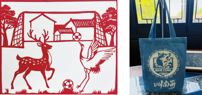 左图:兴化非遗传承人解善彪以剪纸作品助阵“扬泰德比”