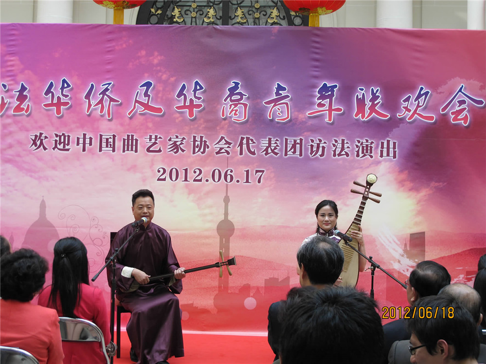 在巴黎埃菲尔铁塔下向评话大师吴君玉讨教艺术