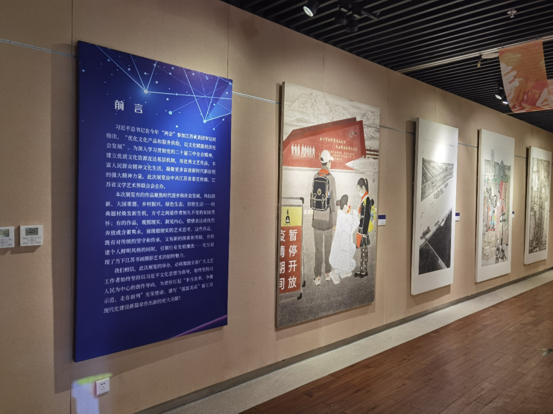 展览现场,一幅幅精美的书画作品令观众目不暇接。这些作品有的聚焦时代进步和社会发展,展现了科技创新、大国重器、乡村振兴等题材,让观众在欣赏艺术的同时,也能感受到国家的发展与变迁。有的作品则观照现实、洞见内心,以独特的艺术手法表达情绪,引发观众的共鸣。