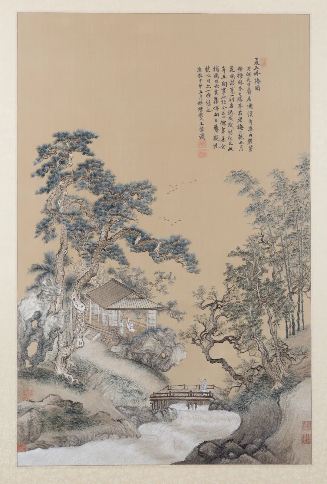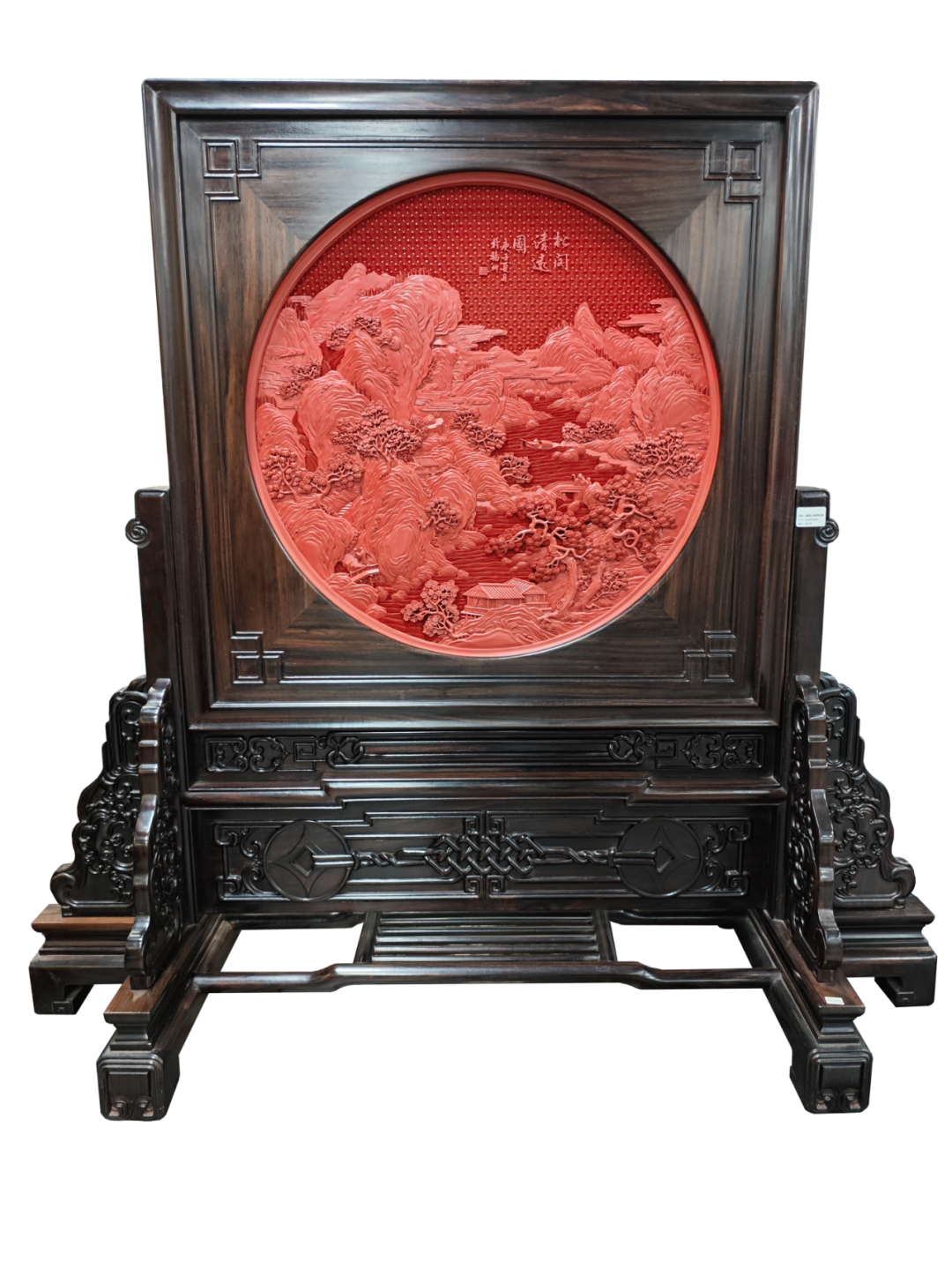 张来喜 《松阁清远图》台屏 [ 漆器 ]
