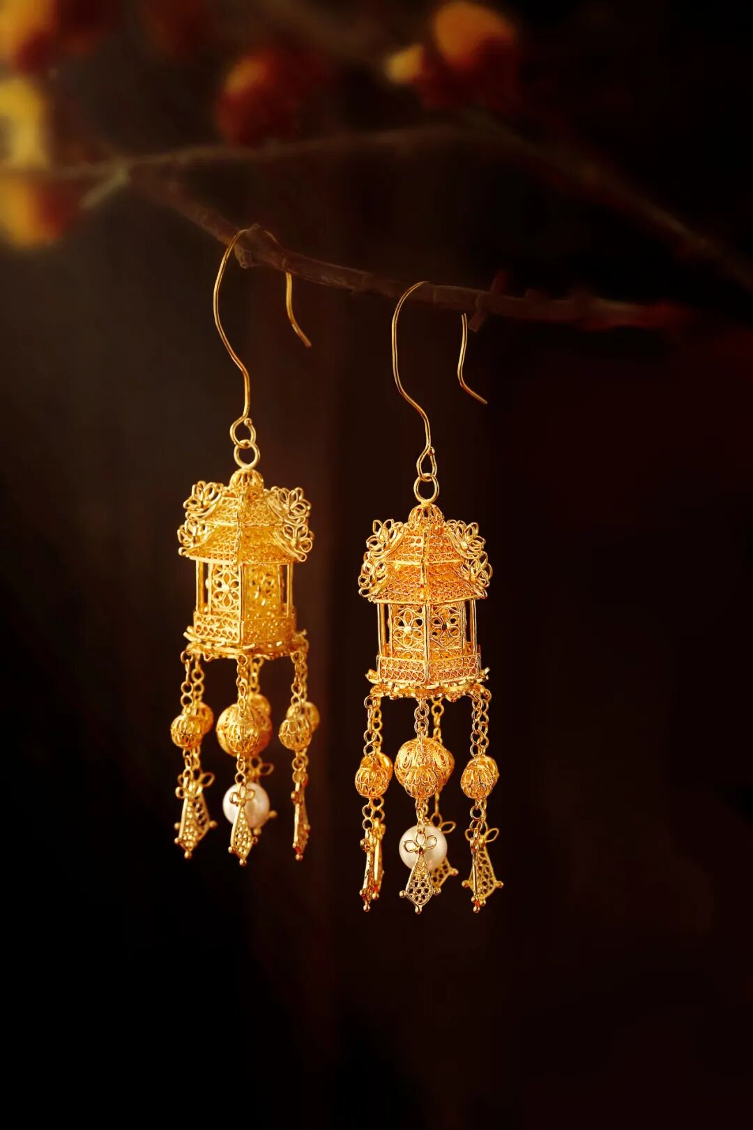 郭夷锬《玲珑宫灯》花丝耳饰 [花丝镶嵌与錾刻技艺]
