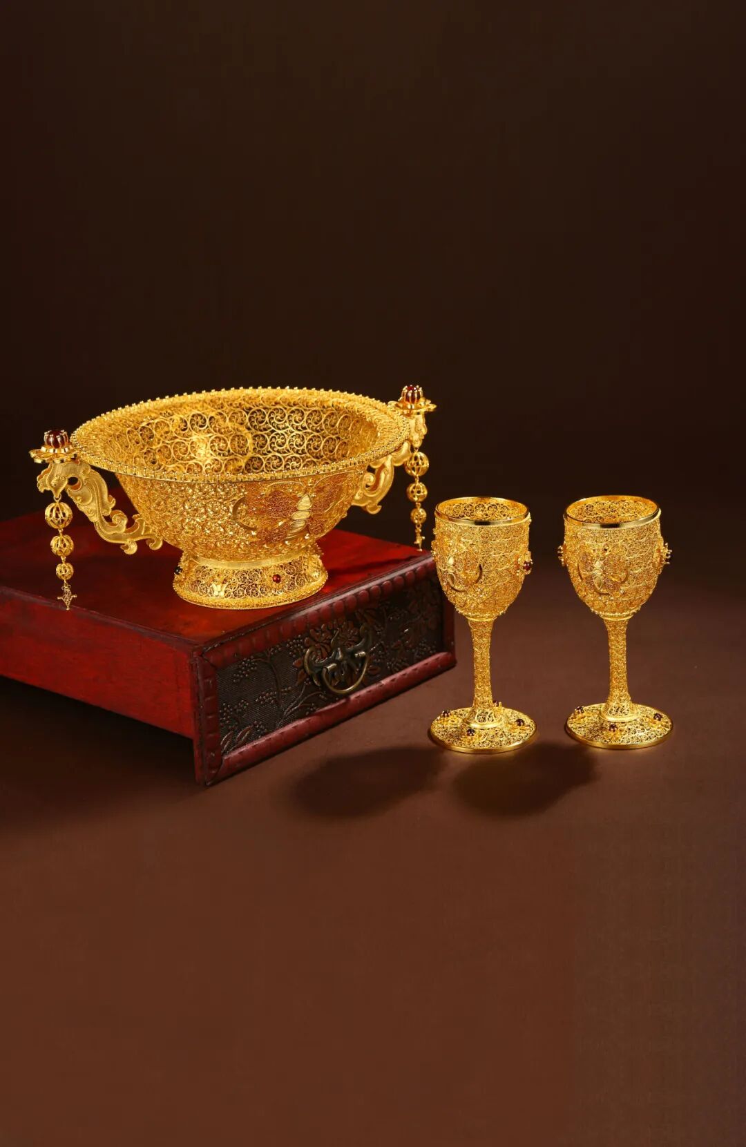 郭夷锬龙凤富贵金碗·龙凤洒杯 [花丝镶嵌与錾刻技艺]