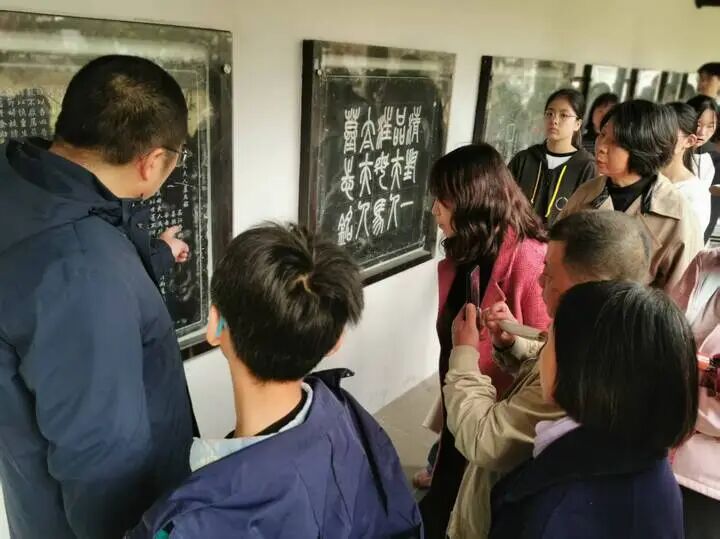 “学习书法除了大量的练习技法外,还要开阔眼界。今天,我就带大家了解下身边的‘宝藏’。”冬日晌午,温暖如许,在叶圣陶纪念馆书法碑廊,苏州市书法家协会秘书长何鹏正为一群书法爱好者导览。“这块墓志与其他碑刻不同,这块墓志的篆盖、撰文、书丹、刻石由四位名家合作而成,可见墓主人之尊贵。”在一块名为《清封一品夫人汪母马太夫人墓志铭》前,何鹏解读了墓志的书法价值,还细致深入地剖析了铭文的内容及其背后相关的故事。“这样的解读让人大开眼界,不仅学到了书法本身的知识,还学到了书法之外的历史文化知识,受益匪浅。”书法爱好者刘芹对这样的访碑活动发出由衷点赞。