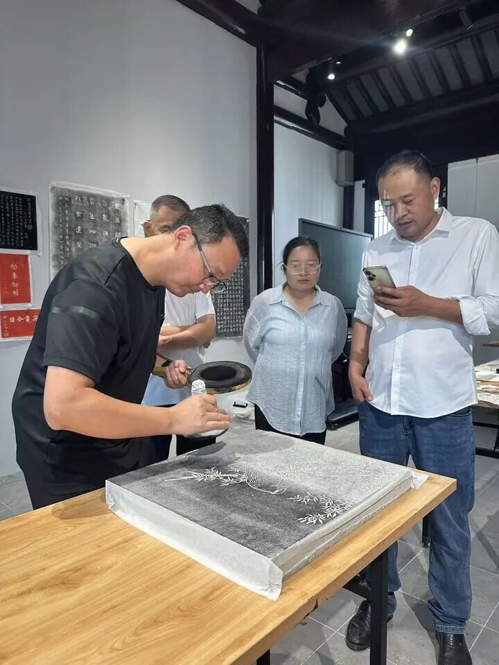 “传拓是一门用纸和墨,以拓包从铸、刻器物上捶印其文字或图案的技术……”在距离甪直数十公里之外的张家港,一场主题为“用纸墨穿越时间的方法——碑帖传拓技艺”的讲座开讲,主讲者传拓技艺非遗传承人沈峰枫以图文并茂的方式,讲述了传拓技艺的历史演变和发展现状,让现场观众领略了一场与古人跨越时空的“对话”。讲座结束,沈峰枫还示范了传拓过程,让这项“冷门”技艺为更多人知晓。“随着时间的流逝,很多技艺渐渐消失,需要让更多的青少年接触传拓艺术,体验非物质文化遗产的魅力,让经典文化永远流传。”观众潘明说。
