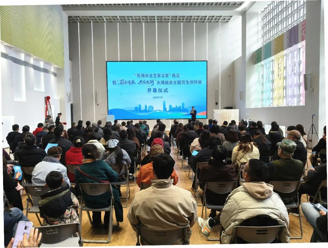 ▲2025年12月30日,“无锡市文艺家之家”在伯渎河文化艺术中心揭牌成立。伴随着“文艺家之家”的成立,其入驻后的首个展览——“薪火传承 共绘太湖”太湖画派主题写生创作展也拉开帷幕。未来,“无锡市文艺家之家”将常态化开展各类文艺活动,打造集艺术交流、展览展示、教育培训、创作孵化于一体的文艺惠民服务体系,让文艺之花在基层绚丽绽放。