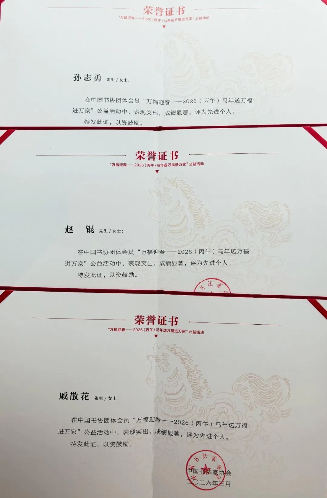 表彰 | 2026年中国书协“万福迎春”公益活动优秀团体会员、先进集体和先进个人