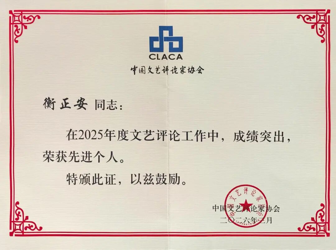 喜报 | 衡正安获2025年度全国文艺评论工作先进个人