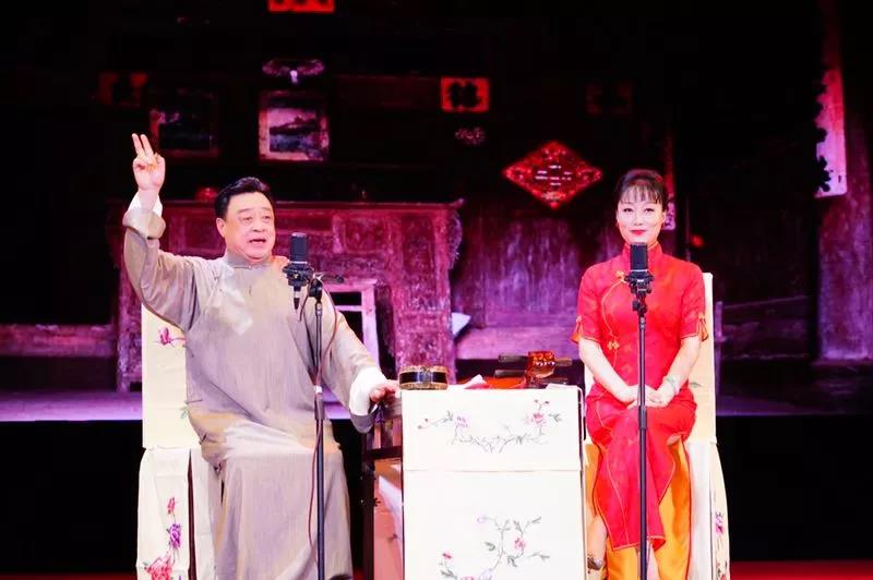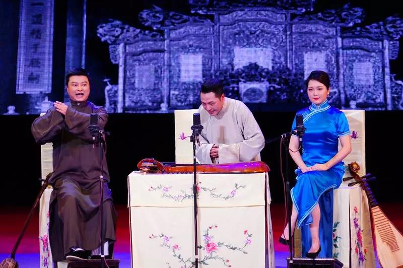 沈彬(左一)施斌(左二) 郁群表演弹词选回《杨乃武—毕氏翻案》