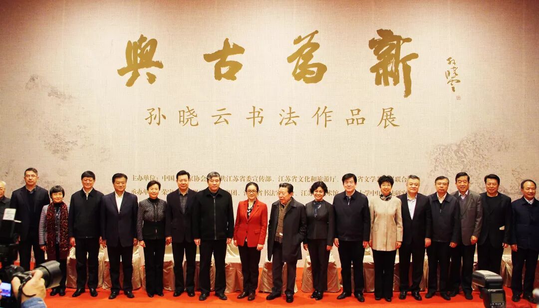 全国政协原副主席、中国文联名誉主席孙家正,中宣部副部长孙志军,文化和旅游部副部长李群,中国文联主席、中国作协主席铁凝,中国文联党组书记、副主席、书记处书记李屹,中国文联副主席赵实,中国文联原副主席覃志刚、杨承志,国家行政学院原副院长周文彰,全国政协书画室副主任赵学敏,中共江苏省委常委、宣传部长王燕文,江苏省副省长王江,中国出版集团公司总裁、中国出版传媒股份有限公司董事长谭跃,江苏省政协副主席阎立,江苏省政协副主席、南京大学党委书记胡金波等领导和嘉宾出席开幕式。开幕式由江苏省文联党组书记、常务副主席、书记处第一书记水家跃主持。中国书法家协会主席苏士澍,江苏省文联主席章剑华分别致辞,孙晓云向中国国家博物馆赠送书法作品和作品集并致答谢词,国家博物馆副馆长陈成军接受捐赠并颁发收藏证书。
