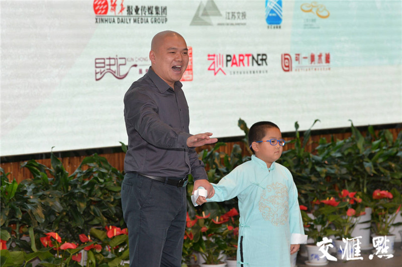 本次展览中最大尺幅的作品主角,是江苏省昆剧院的优秀花脸演员赵于涛,他和7岁儿子赵梓辰共同演唱了《牡丹亭冥判》中的【天下乐】。两个大小花脸,一举手一投足,铿锵有力,引来全场阵阵叫好声。