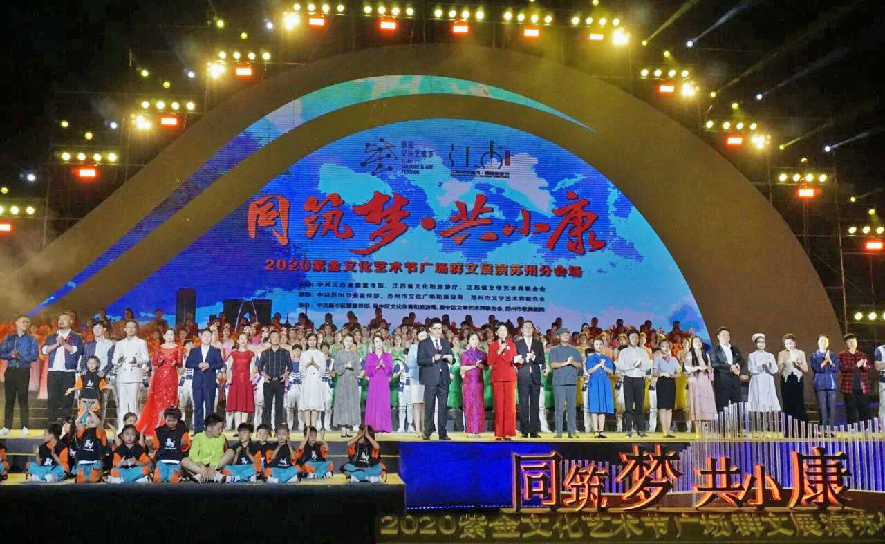 10月12日晚,由中共江苏省委宣传部、江苏省文旅厅、江苏省文联主办,中共苏州市委宣传部、苏州市文广旅局、苏州市文联承办的“同筑梦•共小康”2020紫金文化艺术节广场群文展演苏州分会场在吴中区运河小镇广场举办,本次活动也是第二届中国苏州江南文化艺术•国际旅游节的重要活动之一。