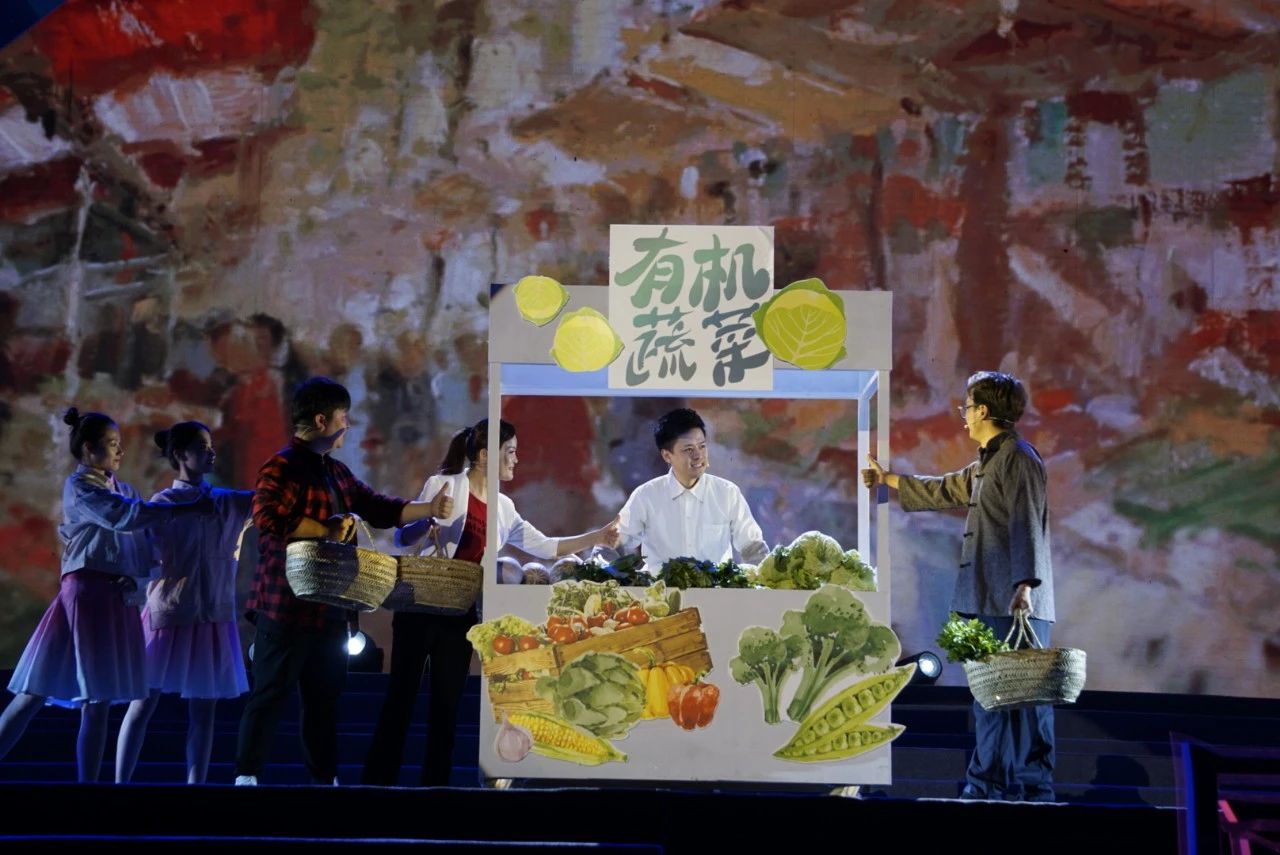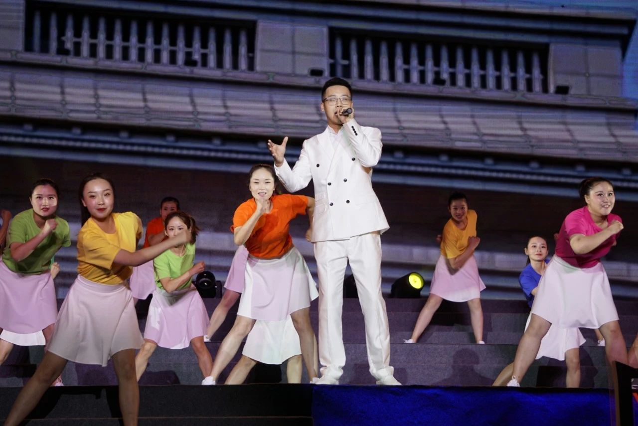 演出在一曲《大江南》中正式拉开序幕。“潮起扬帆正当时•开拓”篇章通过情景剧和广场舞的方式勾勒出了改革开放初期先锋奋斗者的群像,呈现了劳动人民发自心底的喜悦和家乡的巨变。
