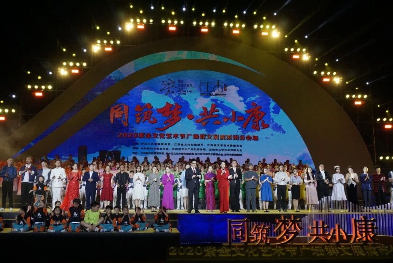 10月12日晚,由中共江苏省委宣传部、江苏省文旅厅、江苏省文联主办,中共苏州市委宣传部、苏州市文广旅局、苏州市文联承办的“同筑梦•共小康”2020紫金文化艺术节广场群文展演苏州分会场在吴中区运河小镇广场举办,本次活动也是第二届中国苏州江南文化艺术•国际旅游节的重要活动之一。