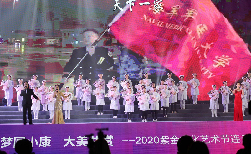 面对突如其来的疫情,在没有硝烟的战场上,那些奋战在抗疫一线的医护人员,用血肉之躯为人民群众撑起了阻挡疫情大潮的最坚实堤坝,用不计生死的人间大爱铸成这个寒冷冬天最温情的暖流,在此背景下,连云港文艺家们创作的歌曲《仁爱中华》在微信、微博、学习强国、《人民日报》客户端等网络平台广泛传播,点击量突破千万。本场演出还得到援鄂医护代表特别出演。