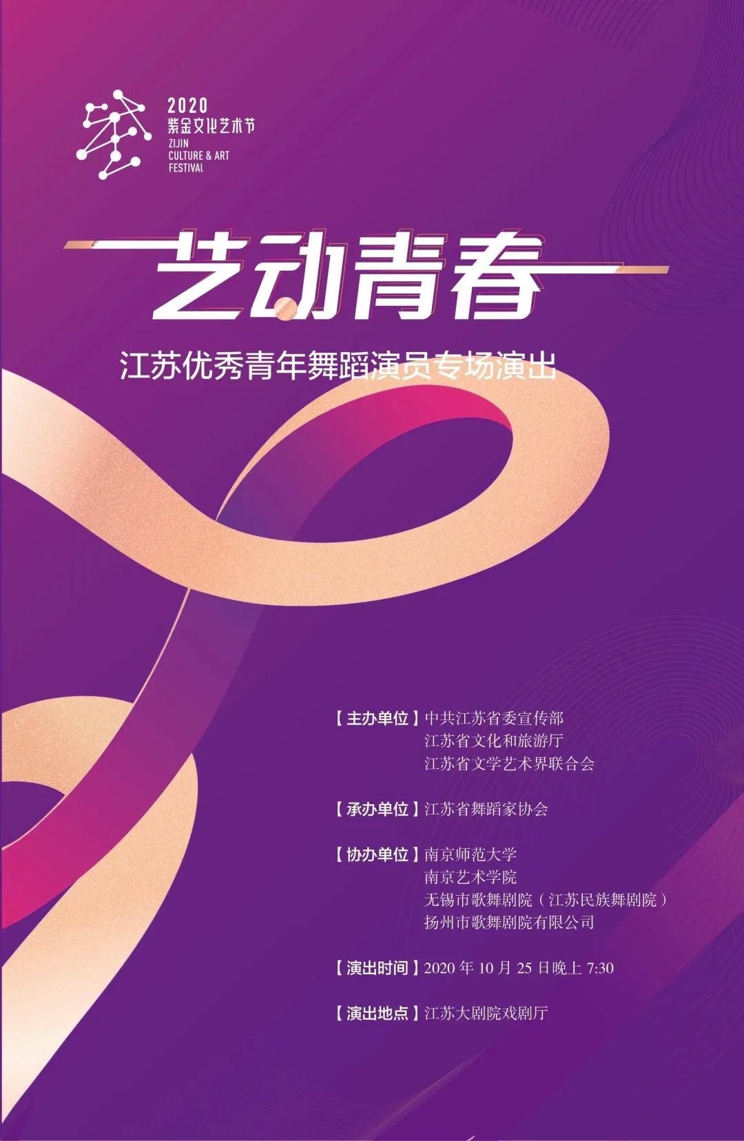10月25日晚,2020紫金文化艺术节“艺动青春”江苏优秀青年舞蹈演员专场演出在江苏大剧院圆满举行。省委宣传部副部长徐宁,省委宣传部副部长、省文明办主任葛莱,省文联党组成员、副主席、书记处书记刘旭东,南京艺术学院党委常委、纪委书记陈咏梅出席演出现场。