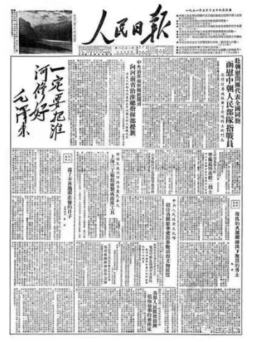 1951年5月15日,《人民日报》发表了毛泽东主席的题词:一定要把淮河修好