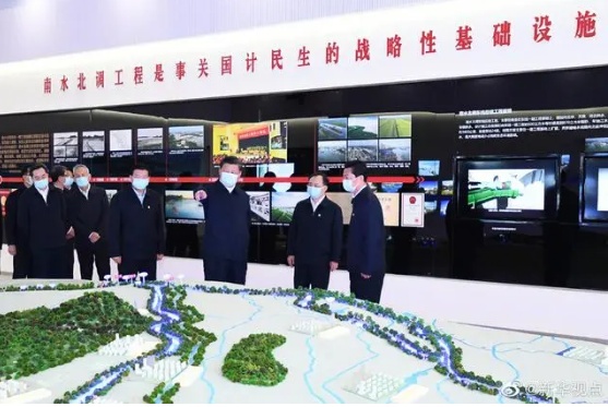 11月13日下午,正在江苏考察调研的习近平总书记来到扬州江都水利枢纽,了解南水北调东线工程和江都水利枢纽建设运行等情况。习近平感慨地说:“南水北调,我很关心,这也是国之大事。(我国)水是北缺南丰,所以一定要科学调剂。但是不能因为我们有这样的措施以后,北方地区就随意用水,这是不行的。我们现在都是要以水定市、以水定业。所以南水北调与我们的就地节水要紧密地结合起来,这两手都要同时抓。”
