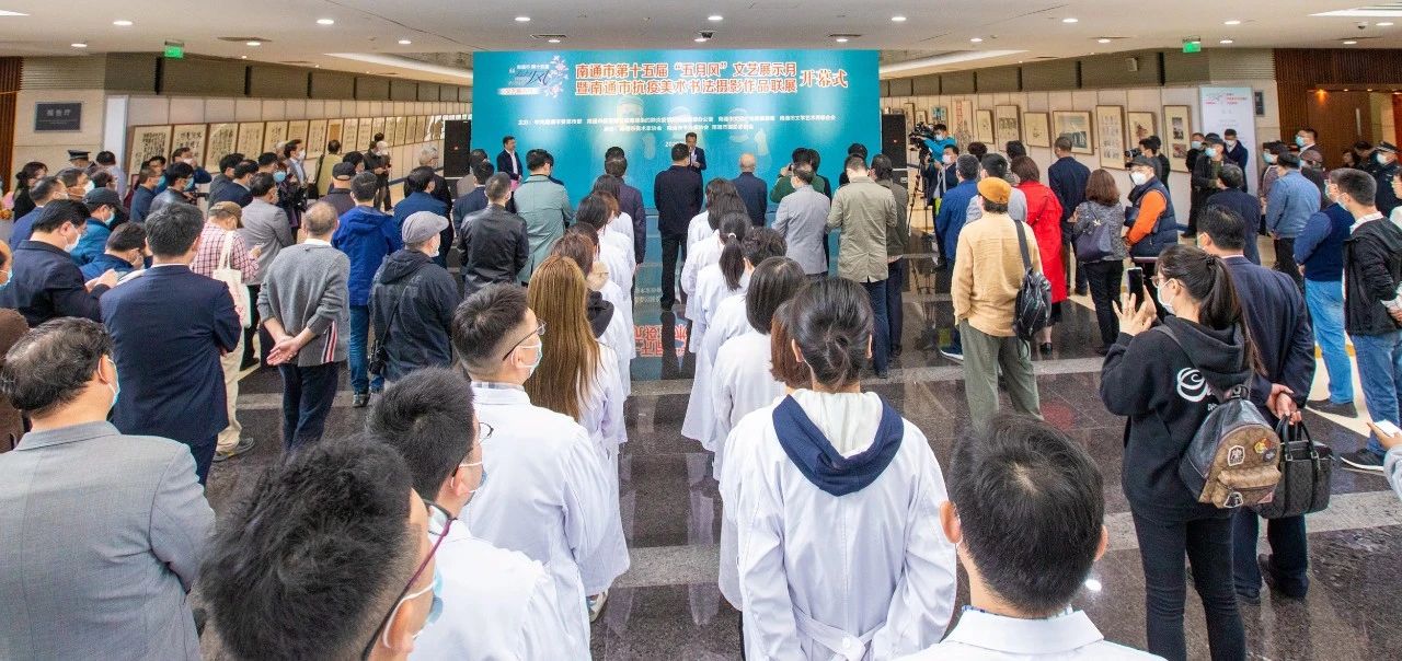 5月6日下午,南通市第十五届“五月风”文艺展示月暨南通市抗疫美术书法摄影作品联展开幕式在市行政中心主楼二楼大厅举行。