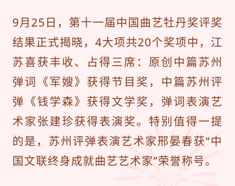 一份“血缘”报告,打破了本来幸福和睦的家庭,引出了一个重大秘密隐私,也让一位可亲可敬的“军嫂”清晰地展现在人们眼前……中篇苏州弹词《军嫂》,以真实故事为原型,讲述了“亲子鉴定”在一个军人家庭里引发的轩然大波。一代军嫂对家庭责任的自觉担当、忍辱负重的无私大爱和拥军报国的博大胸怀,让该作一举收获本届牡丹奖节目奖。