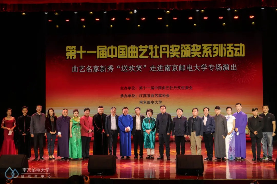 10月17日晚,由第十一届中国曲艺牡丹奖组委会主办,江苏省曲艺家协会、南京风云舞台设备有限公司承办的第十一届中国曲艺牡丹奖颁奖系列活动之五——曲艺名家新秀“送欢笑到基层”专场演出在南京邮电大学激情上演。中国曲艺家协会分党组副书记、秘书长曲华江,江苏省文联党组成员、副主席、书记处书记刘旭东,省曲协副主席、秘书长孙志兵,南京邮电大学党委副书记王国平,南京邮电大学党委副书记、副校长王宗荣等领导和嘉宾出席活动,和南邮师生一起观看了演出。