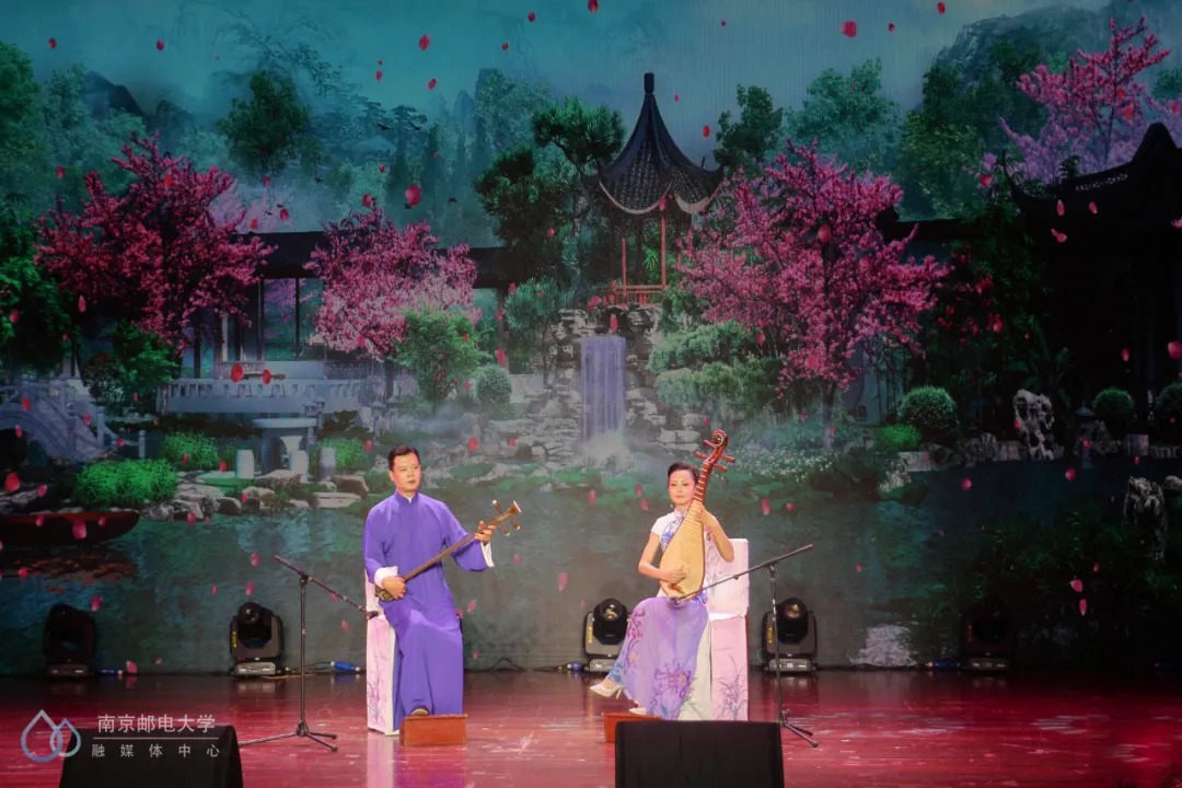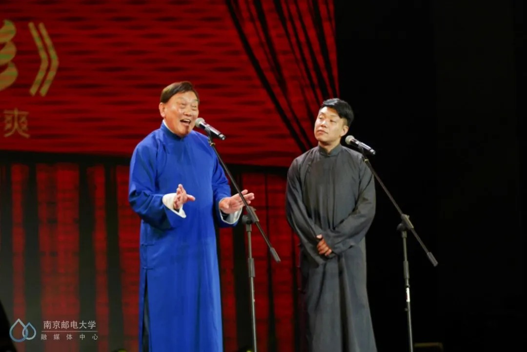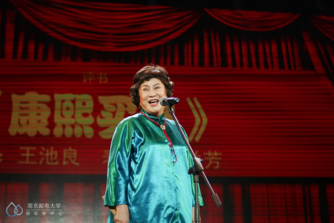 赵松艳领唱的扬州清曲《又见茉莉花》拉开了演出帷幕,其唱腔精妙婉转,曲调和谐优美,传达了浓郁的扬州韵味;郭金杰表演的二人转单出头《报山名》一口气唱遍祖国大好河山,让人禁不住屏气凝神;吕少明与梁爽带来相声《国粹异彩》,让观众在欢声笑语中感受到国粹的无穷魅力;冯欣蕊的《重整河山待后生》刚柔并济,一曲多用的唱腔和写意传神的表演博得阵阵掌声;范军与搭档明男男联袂献上相声《新学电台》,惟妙惟肖地模仿了多位曲艺名家,给大家带来无限的情思与欢乐;王文水的快板书《哪吒闹海》故事跌宕起伏,扣人心弦;脱口秀《金陵趣事》中,陈峰宁用丰富生动的表情、动作演绎风趣诙谐的身边故事,让观众乐开了花;蒋春雷、黄庆妍一曲苏州弹词开篇《钗头凤》,尽显“中国最美声音”的独特魅力;刘兰芳带来压轴节目评书《康熙买马》,炉火纯青的表演让观众拍案叫绝,将现场气氛推向最高潮。整台演出名家新秀荟萃,传统曲艺和时代风尚交相辉映,曲种繁多,亮点纷呈,精彩连连,为南邮师生奉献了一场高质量、高品位的曲艺盛宴,赢得观众阵阵掌声和交口称赞。