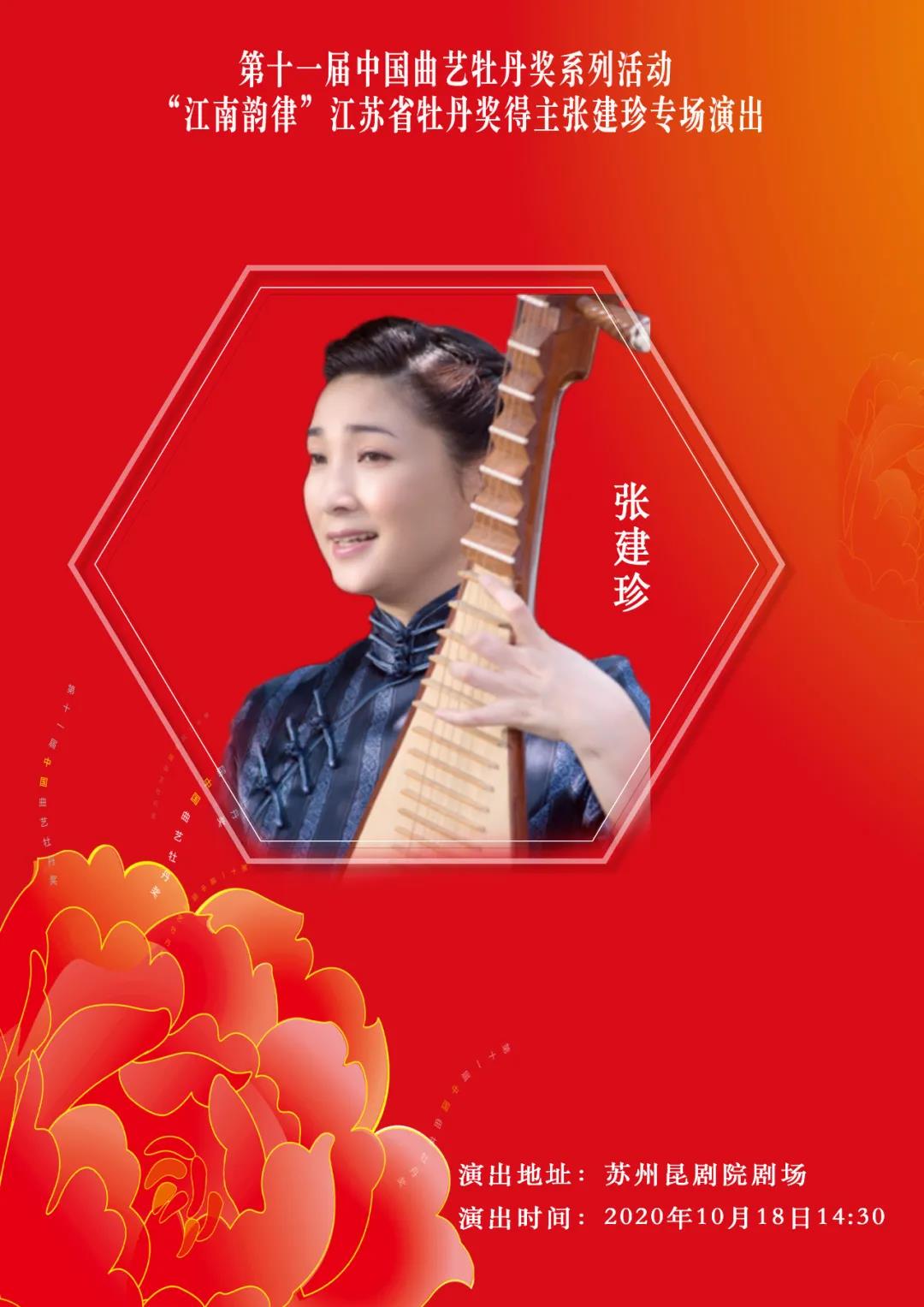 18日下午,由第十一届中国曲艺牡丹奖组委会主办,中共苏州市委宣传部,苏州市文化广电和旅游局,苏州市文联承办,苏州市曲协,江苏省苏州昆剧院,苏州市评弹团,苏州市锡剧团有限公司协办的第十一届中国曲艺牡丹奖颁奖系列活动之十四——“江南韵律”江苏省牡丹奖得主专场演出在苏州昆剧院剧场举行,上演本届牡丹奖表演奖得主张建珍的个人专场。