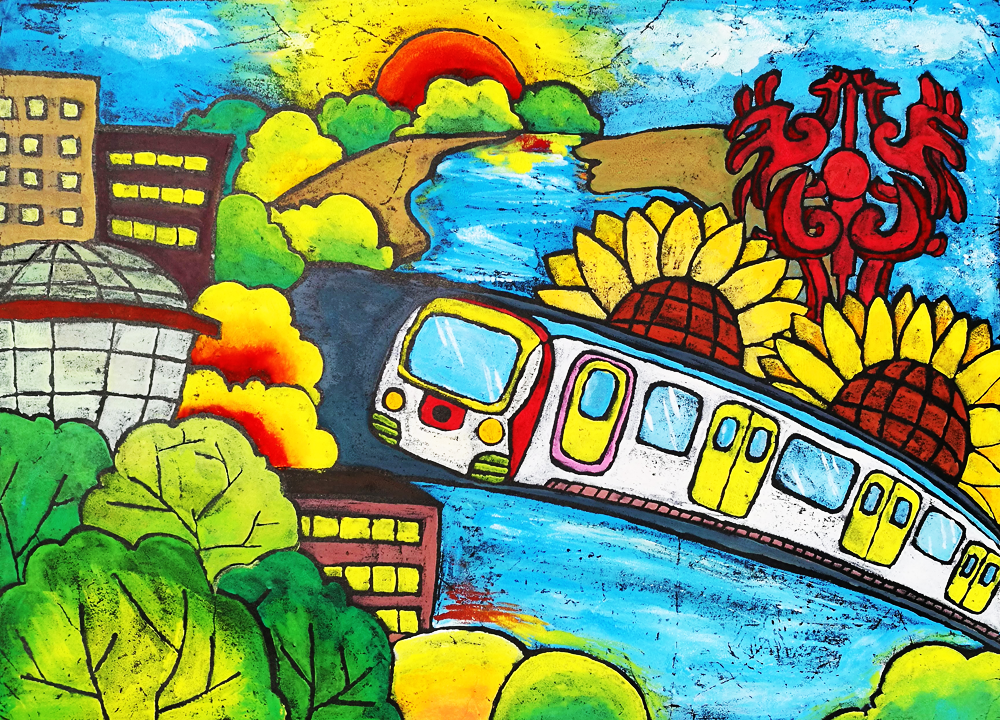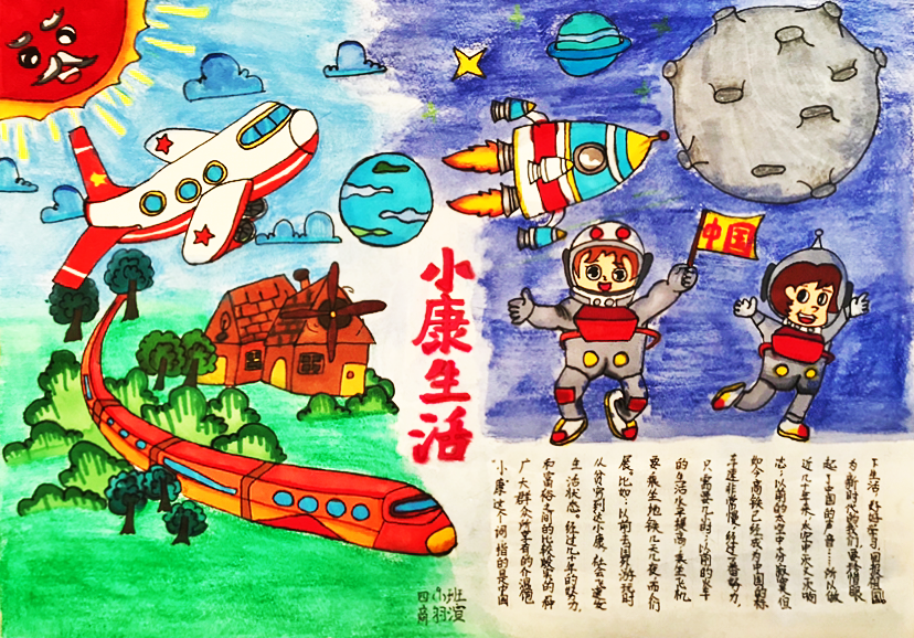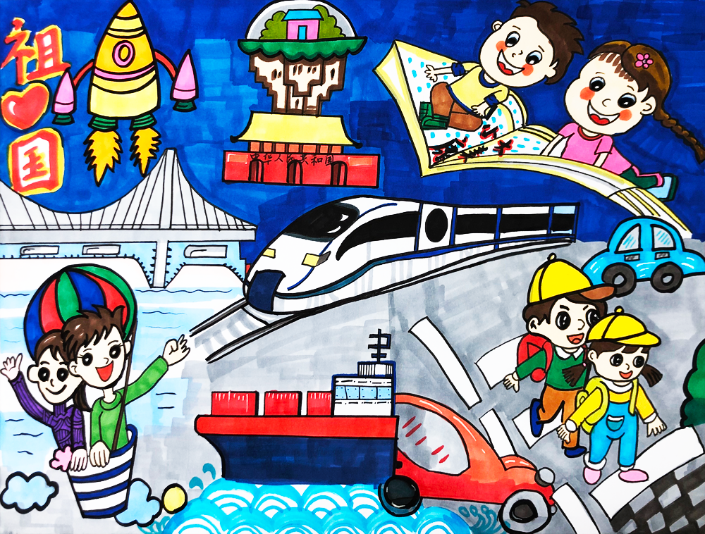 作品介绍:随着科学发展,经济进步,人们生活的越来越好,住的房屋也越来越温馨,和谐号在盐城开通,方便了人们出行。科学不断进步,我们少先队员也励志要努力学习,为国争光。