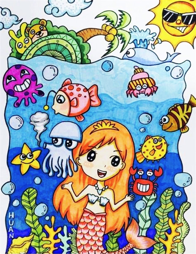 作品介绍:海底世界,有数不清的生物,充满了神奇的色彩。这样一个神秘未知的世界,总让人有一种想去探索的冲动。我一定努力学习知识,长大后做一名科研人员,有机会能驾着潜水艇,去往大海的深处,在那里去发掘人类还未知的生物。