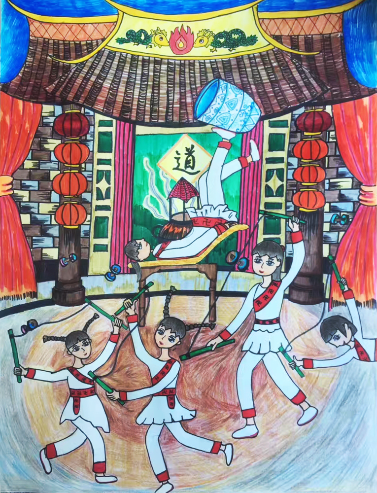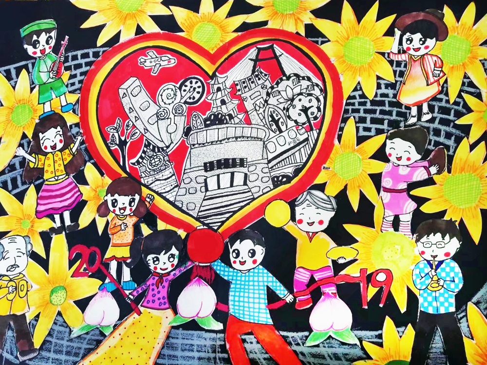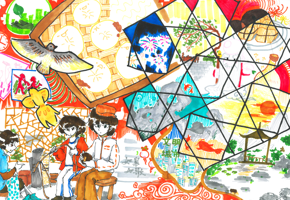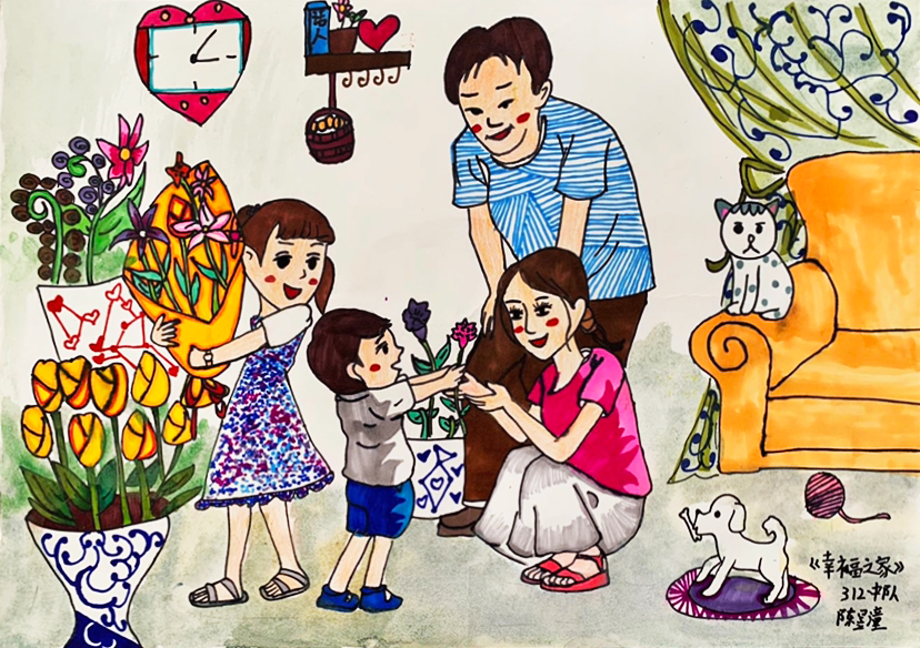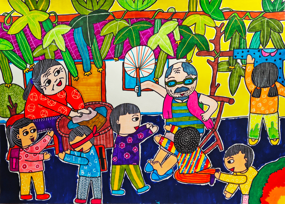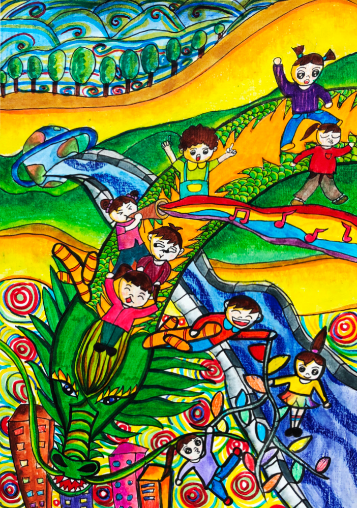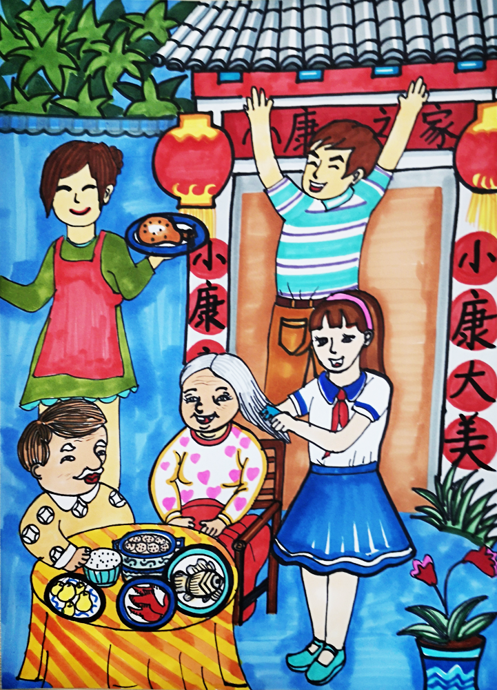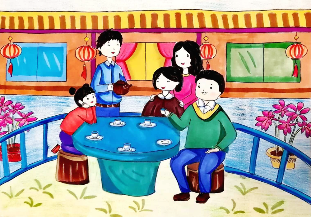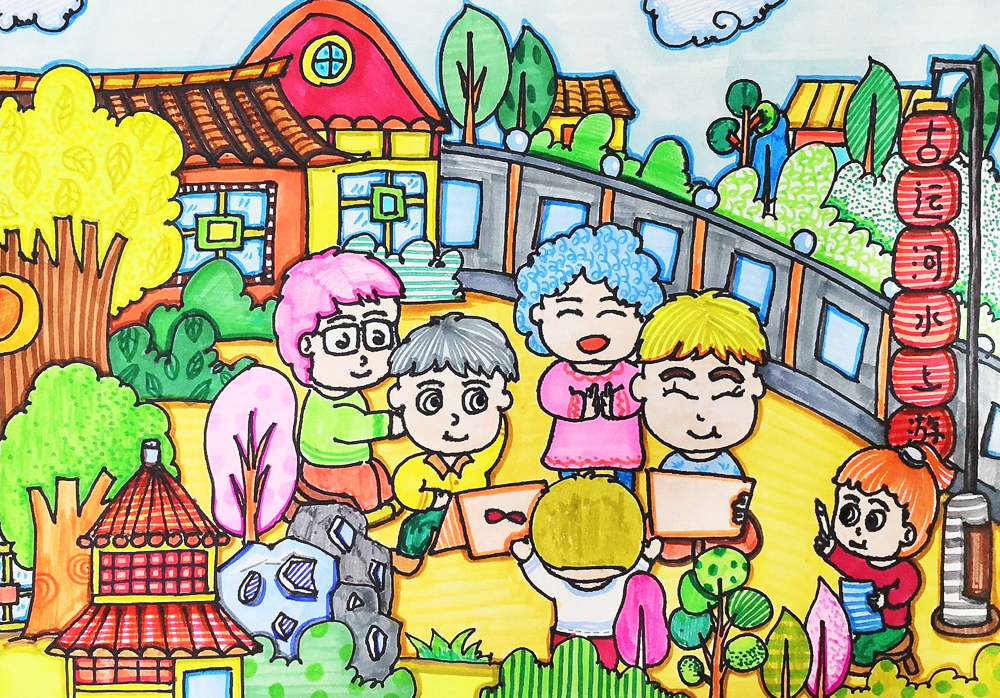 作品介绍:我从小生长在古运河旁,每天欣赏着旖旎风光。趁着节假日,我们全家一起游览古运河,一路欣赏两岸富饶的风光,感受着家乡的日新月异。我画下全家在古运河岸旁游戏的场景,画笔虽只能记录下美好生活的其中一幕,但是幸福安康的日子永远记忆在我内心最深处。