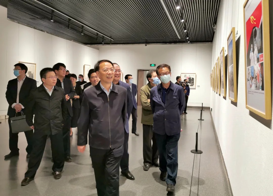 市文广旅游局、市卫健委、市文联有关负责人,市文联部分文艺家协会代表,参展作者,医护人员代表近百人参加活动。