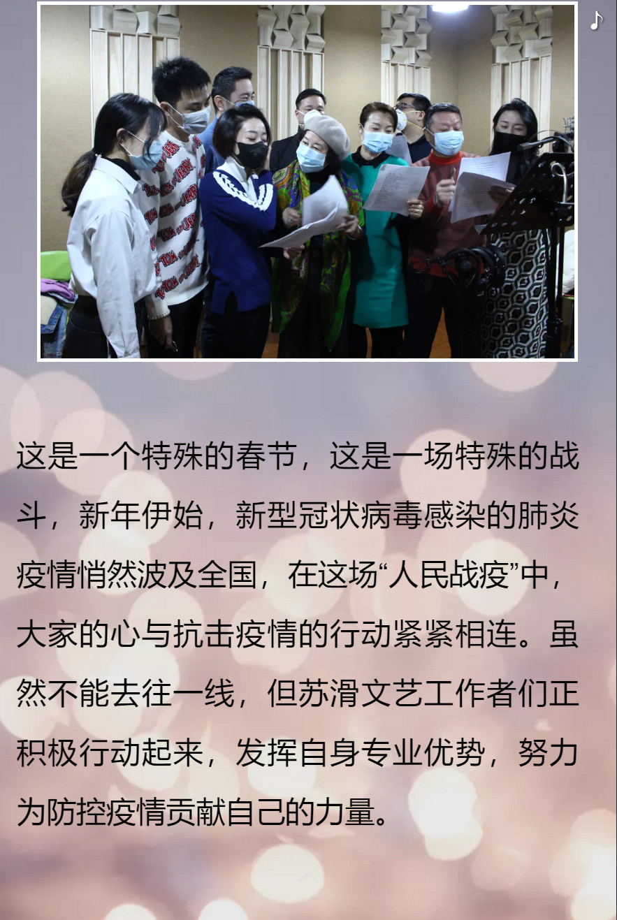 江苏省戏剧家协会在省文联党组、主席团的正确领导下,第一时间向全省的戏剧家、戏剧工作者发出了积极行动、勇于担当,创作“坚决打赢疫情防控阻击战”为主题的艺术作品的倡导,江苏戏剧人踊跃行动,他们用戏曲、戏歌、朗诵等艺术形式传递正能量、提振精气神,致敬奋战在防控一线的医务工作者、解放军军人、志愿者!春天已经到来,寒冬即将过去!武汉加油!中国加油!